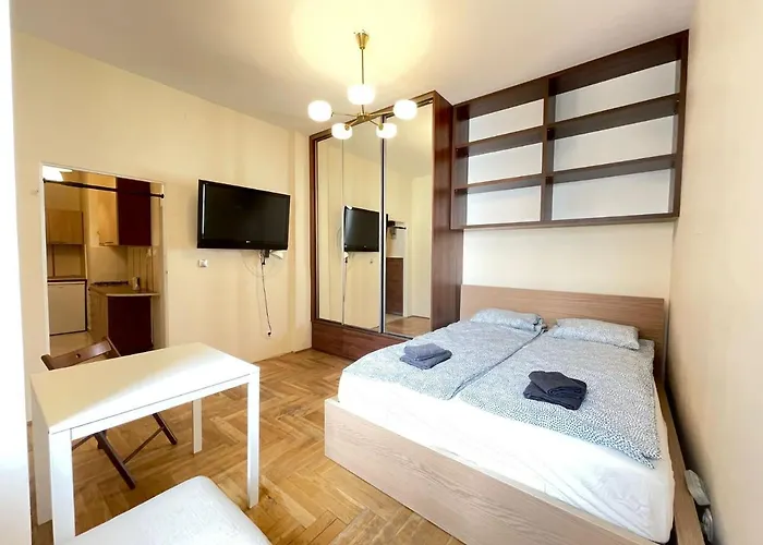 Obiekt oferuje również pełnowymiarową kuchnię z lodówką i piekarnikiem. Dworzec autobusowy Kozminska 01 znajduje się w odległości 10-minutowego spaceru od apartamentu o powierzchni 27 m².